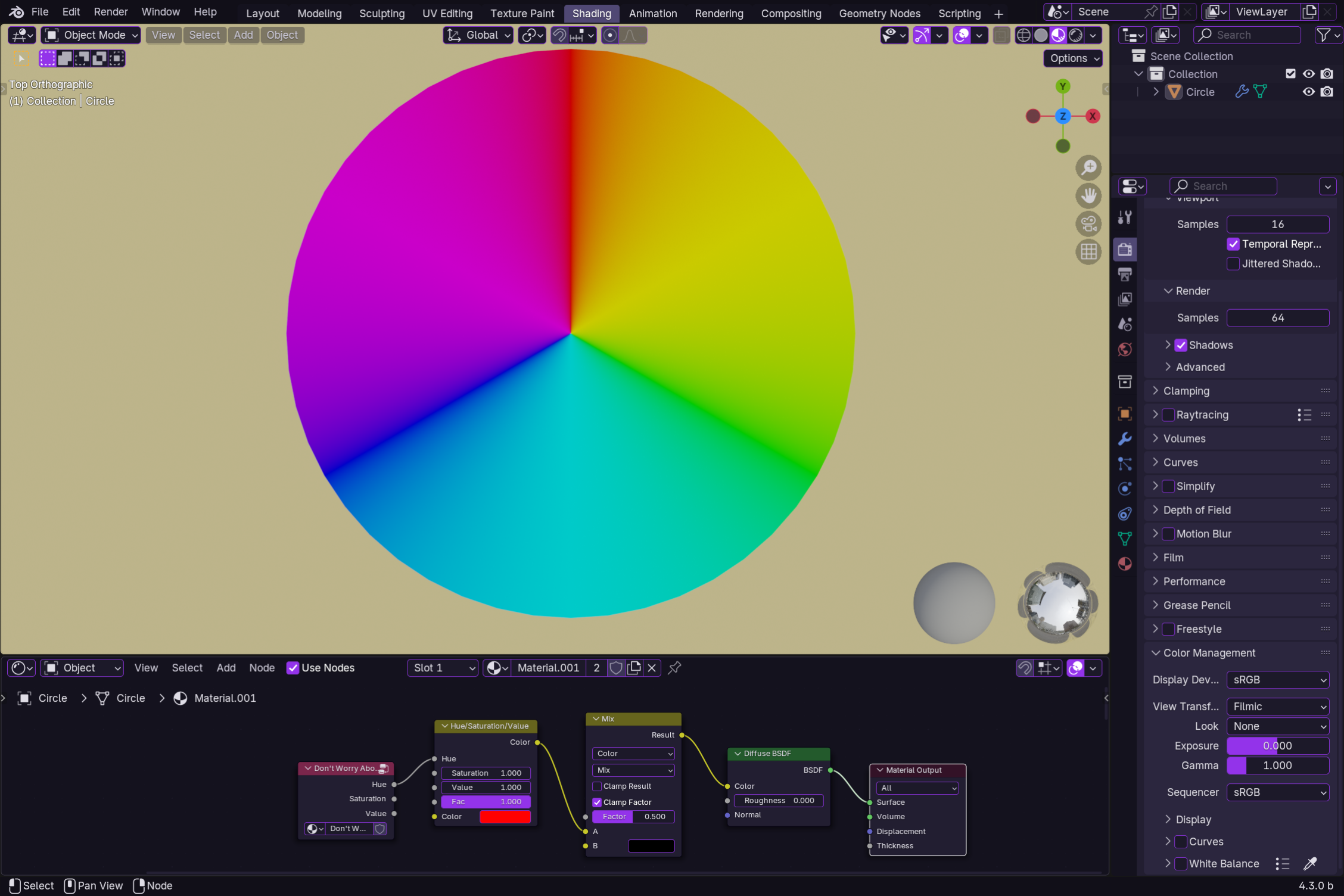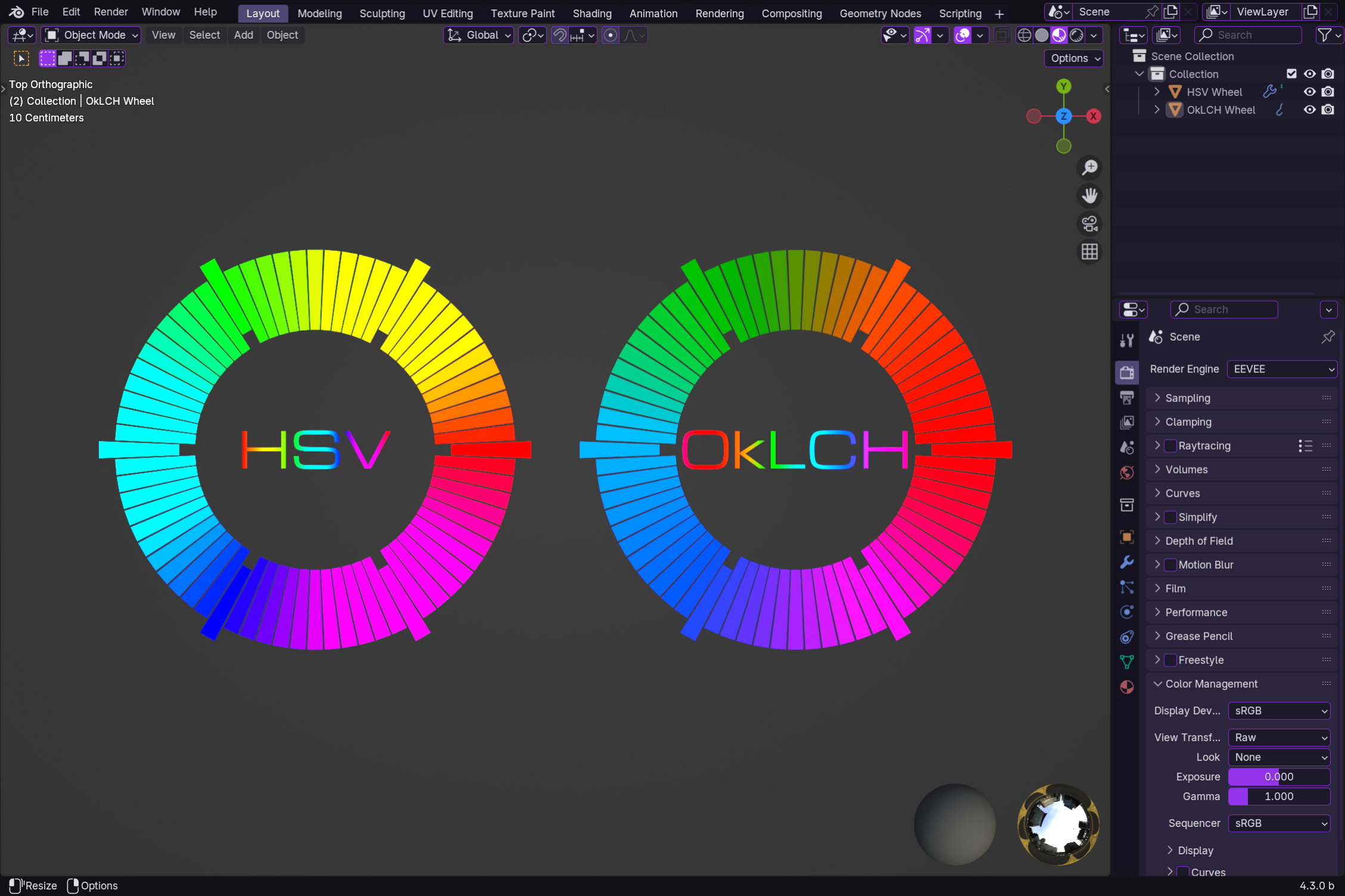I spent entirely too much time today trying to make a color wheel that survives #Blender3d 's view transforms. Why do the PBR people hate color so much
